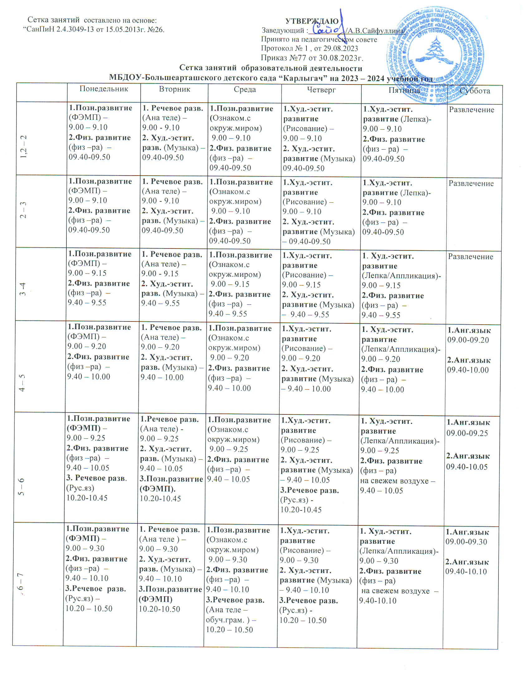 Расписание занятий образовательной деятельности на 2023-2024 учебный год