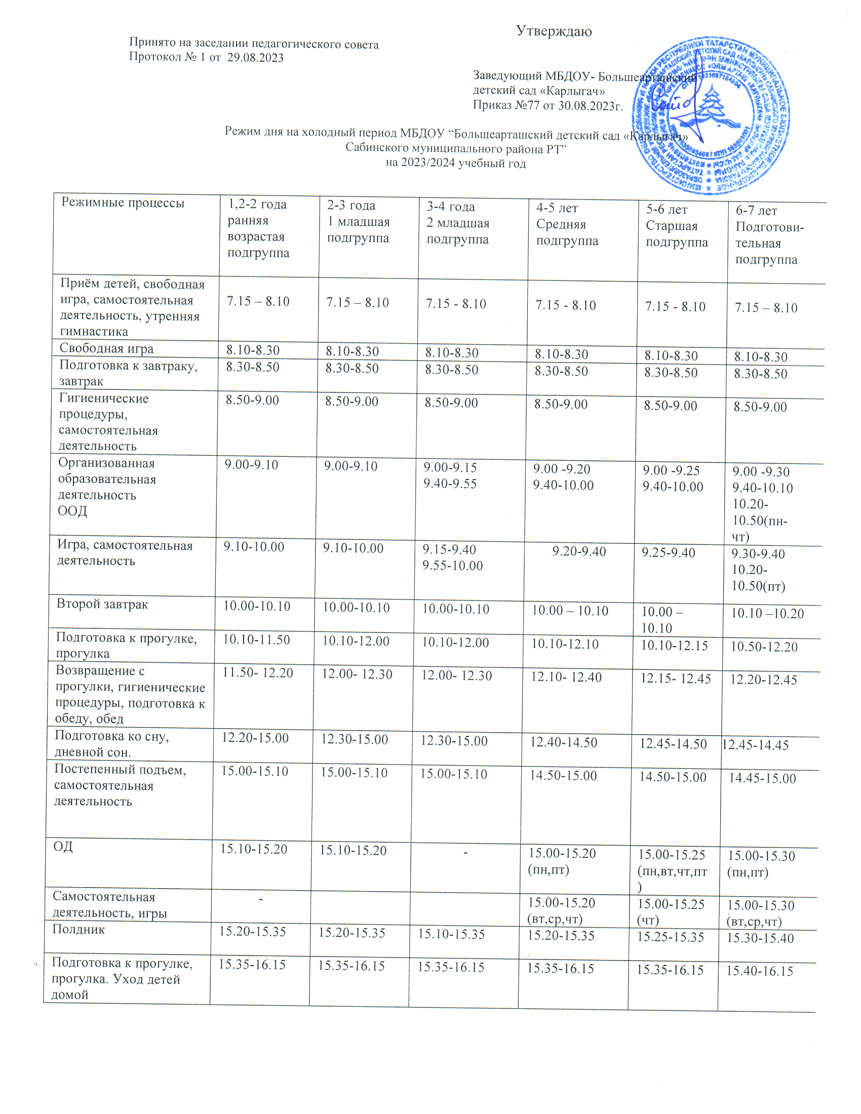 Образовательная программа дошкольного образования Муниципального бюджетного дошкольного образовательного учреждения «Большеарташский детский сад «Карлыгач» Сабинского муниципального района Республики Татарстан», которая разработана в соответствии с федеральным государственным образовательным стандартом дошкольного образования и федеральной образовательной программой дошкольного образования (утверждена приказом Минпросвещения России от 25 ноября 2022 г. № 1028).