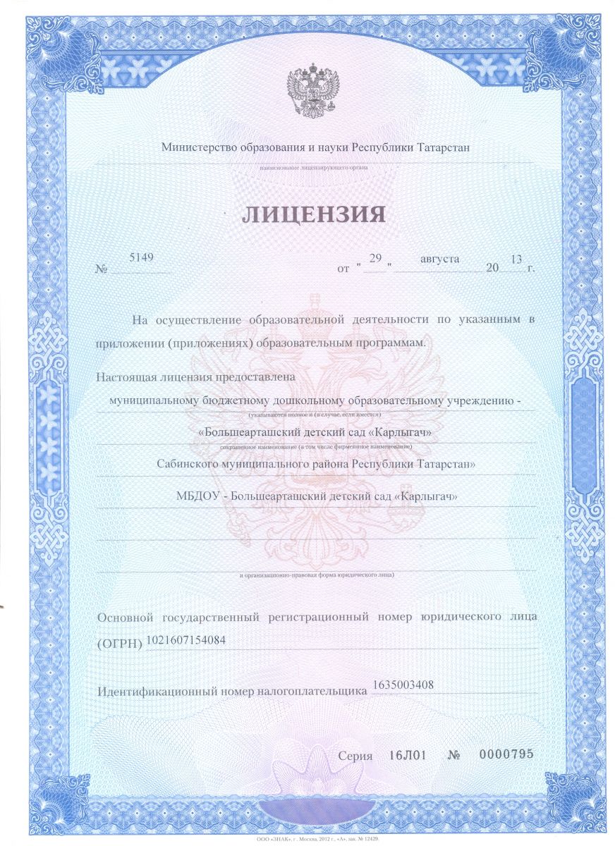 Лицензия на осуществление образовательной деятельности (1 стр.)