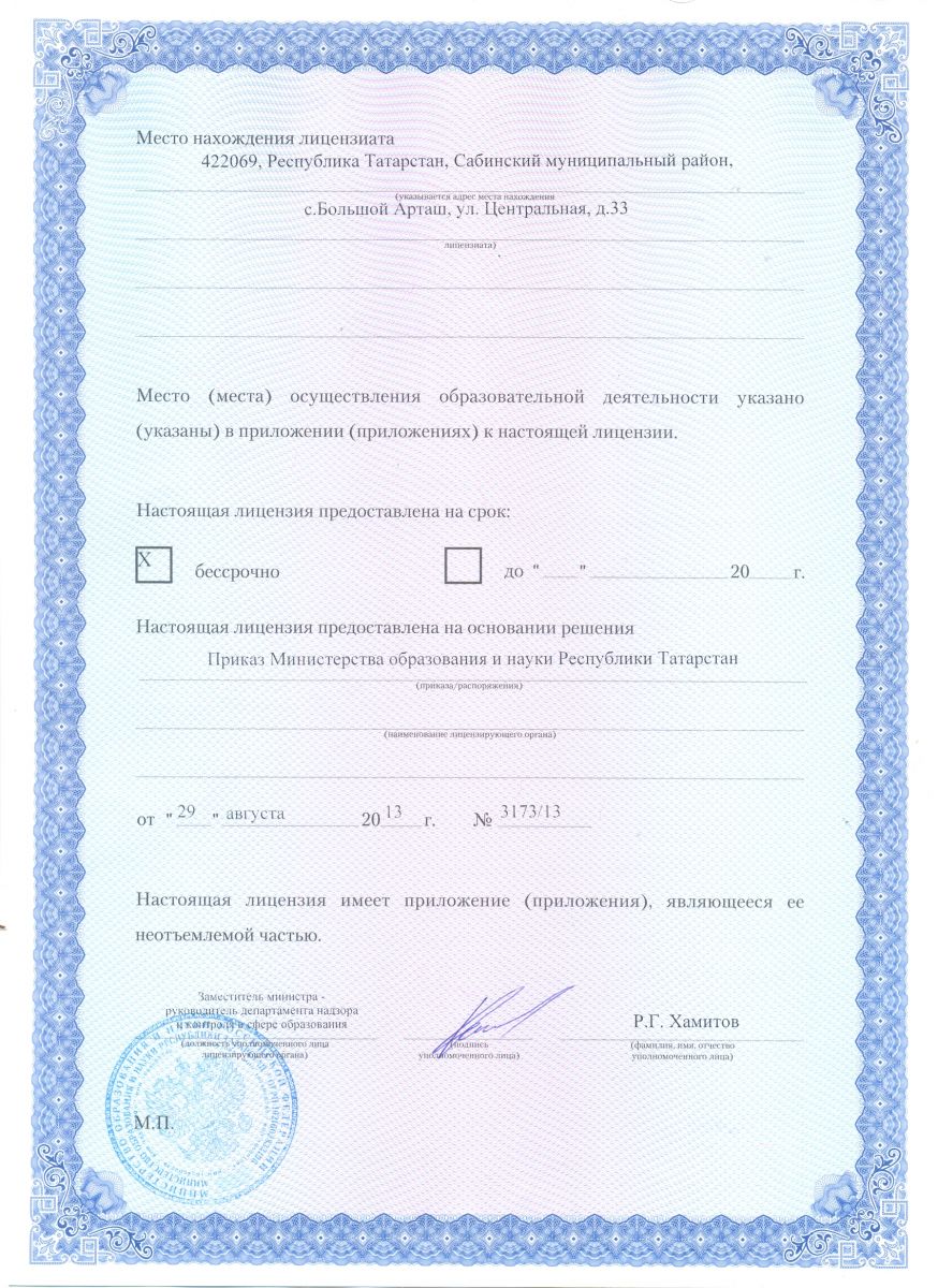 | Адрес: | 422069, Республика Татарстан, Сабинский район, с. Большой Арташ,ул.Центральная д33 |