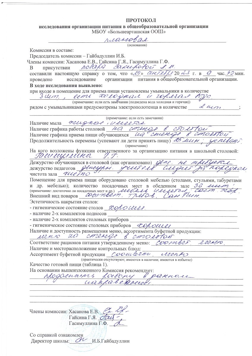 Приказ о создании бракеражной комиссии