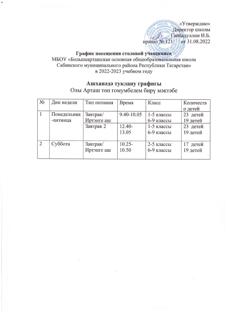 График питания детей в школьной столовой