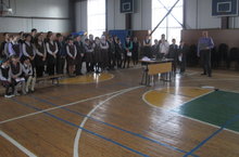 башланып китте. Физика укытучысы Галимуллин И.Ш. иртәнге линейкада