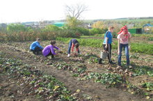 Бүген мәктәп бакчасы гөрләп торды Укучылар,укытучылар һәм техник хезмәткәрләр көзге уңышны җыйдылар.