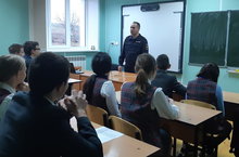 ИПДН ОМВД России по Сабинскому району капитан полиции Габдрахманов Р.В. провел беседу с учаәимися 7,8,9 классов на тему: "Соблюдение ПДД и БДД", "Терроризм" и о не допуәении преступлений и правонарушений. Повторно довел Закона №71 от 2010 года.
