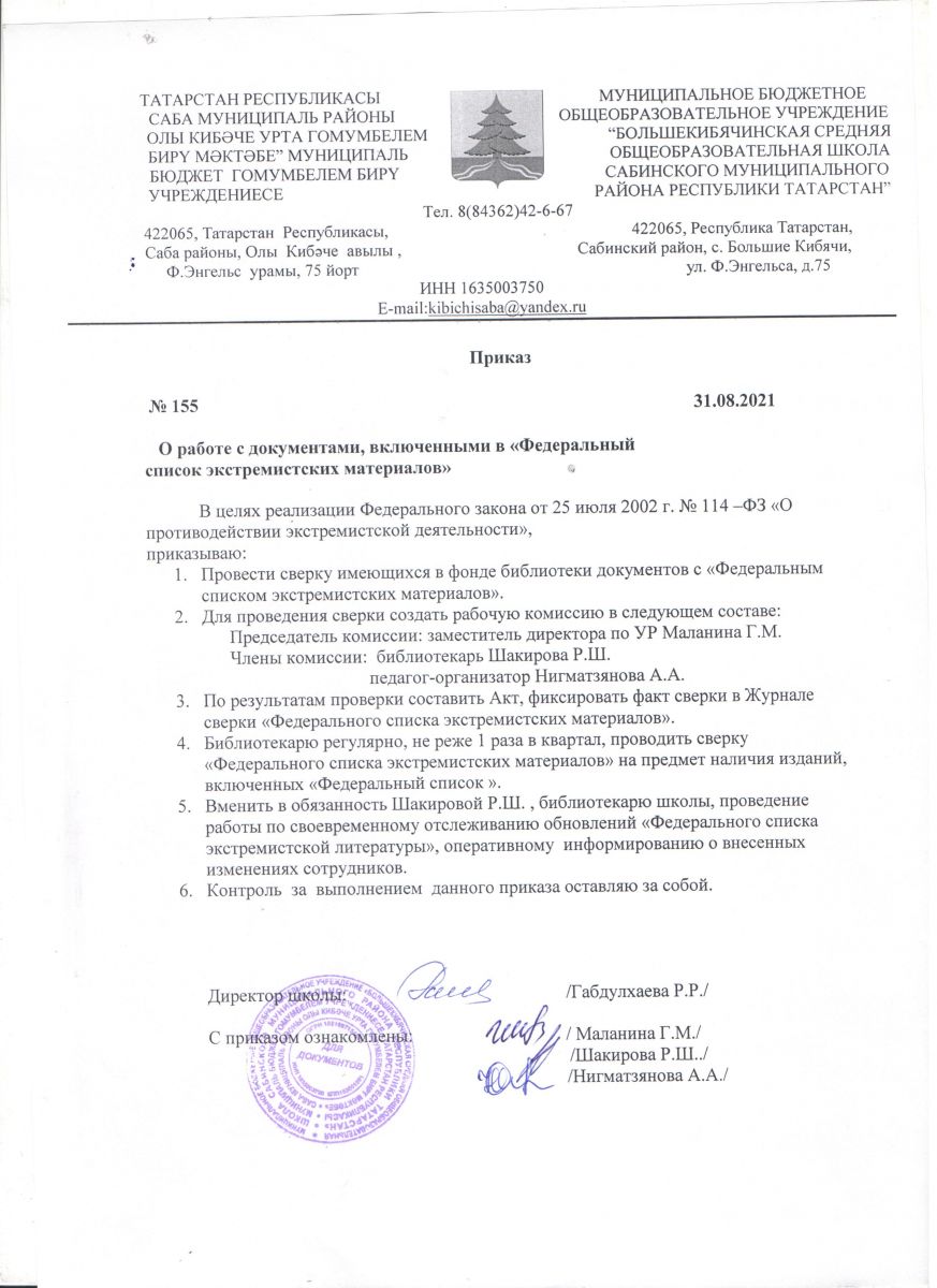 Приказ о работе с документами, включенными в "Федеральный список экстремистских материалов"