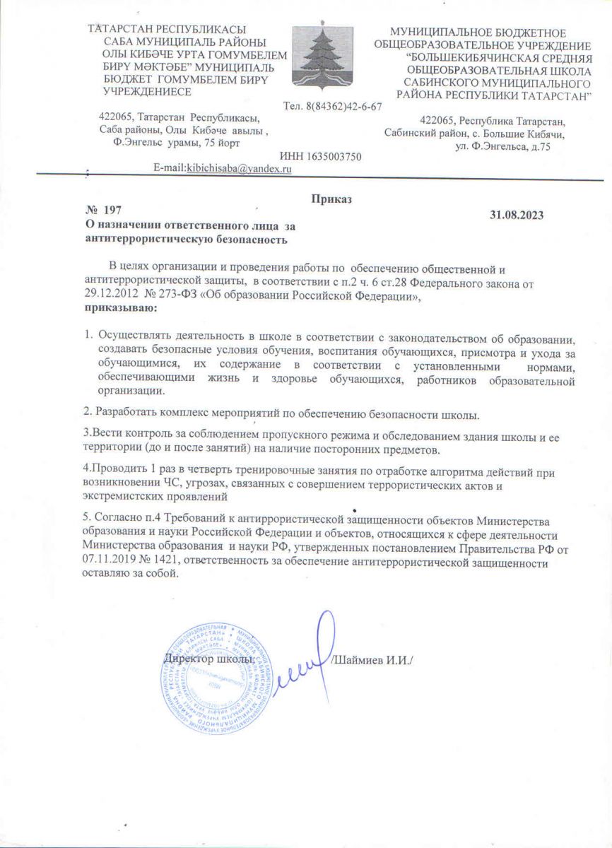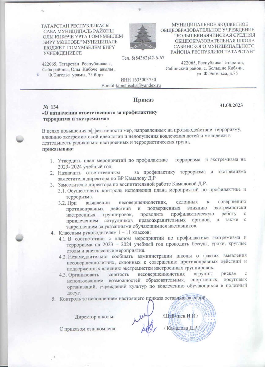 Адрес: 422065, Республика Татарстан, Сабинский район, с.Большие Кибячи, ул.Ф.Энгельса, д.75