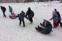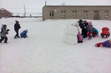 Бүген балалар белән рәхәтләнеп кар атышып уйнадык.