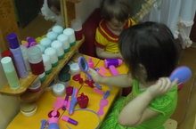 Кызлар һәрвакыт бизәнергә яраталар. Әдилә дә үзенең сеңлесе белән яңа уенчыклар белән чәчтарашлы уйный.