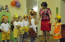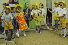 Балалар үрдәк бәбкәләре биюен башкаралар.