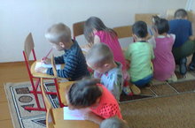 Рус теле эшчәнлегендә балалар сөйләм телен баету, рус телендә сөйләшү, русча төсләрне аерырга өйрәнәләр. Балалар төсләрне аерганда төсле карандашлар белән уенчыкларның схемаларын буярга бик яраталар.