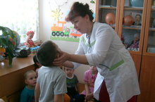 Бакча тәрбияләнүче балаларның сәламәтлекләрен һәрдаим тикшереп, күзәтеп торабыз. Фельдшер Рушания апаларын нәниләр көтеп алалар.