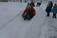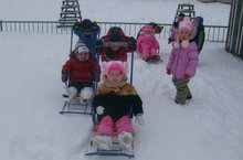 Балаларга бакчада күңеллерәк булсын дип, бакчада эшләүче апалар аларга кечкенә генә тау ясадылар һәм балалар рәхәтләнеп шудылар.