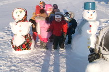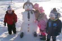 Ел саен бакча яныбыз матур булсын дип, кар сыннары әвәлибез, әмма быел кар бабай, кар әби, кар малай гына кунакка килделәр. Балалар шатланышып алар янында фотога да төштеләр.