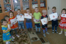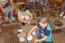 Кечкенәләр белән мамык таякчыклары кулланып миләш тәлгәшен ясадык, үзебезнең бик күп миләш тәлгәше белән кызыл түшләрне сөендердек.