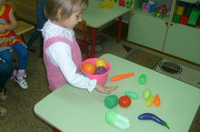 Рус теле эшчәнлеге һәрвакыт уеннар ярдәмендә алып барыла. Балалар белән "Собери овощи" уенын да бик теләп уйнадылар.Һәм яшелчәләрнең русча әйтелешен төгәл әйтә белделәр.