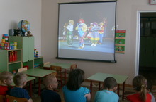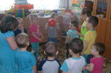 В зале слышен детский смех.