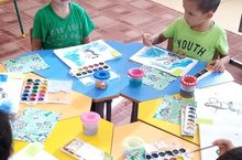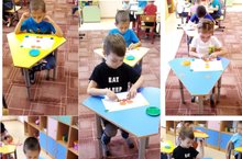 Мәктәпкә китүче төркем балалары белән дәфтәр битендә ориентлашырга өйрәндек.