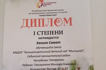 "Миләшкәй" балалар бакчасында тәрбияләнүче Хазиев Самат "Скоро Новый год", дип исемләнгән конкурста дипломга лаек булды. Саматны уңышлары белән котлыйбыз.