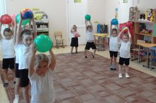 Физкультура эшчәнлегендә туплар белән төрле күнегүләр ясыйбыз.