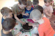 Һәм болгар борычы чәчтек. Балчыкның суны ничек үзенә сеңдергәнен күзәттек.