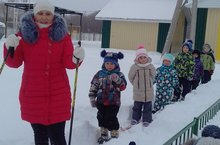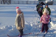 Балалар белән чаңгыда йөрү элементларын кабатлыйбыз.