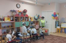 Бүген бакчабызга кунакка ЮХИДИ бүлекчәсен әйдәп баручы Ягаффарова Гүзәл Назыйфовна килде. Без балалар белән "Урамдагы вакыйга" дип, исемләнгән юл йөрү кагыйдәләренә кагылышлы иртә күрсәттек. Ул безнең бакчага бүләкләр һәм балаларга төрле уеннар өләште.