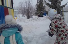 Бураннан курыкмадык саф һавада рәхәтләнеп "Кар атыш" уенын уйнадык.