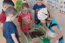 Бүген балалар белән сарымсак утыртык, сарымсакның төзелешен өйрәндек, суның үзлеклеге белән таныштык. Алга таба сарымсакның ничек үсүен күзәтәчәкбез.