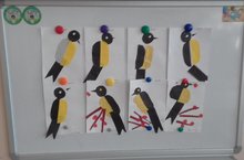Бүген кисеп ябыштыру эшчәнлегендә балалар белән кошлар турында табышмаклар чиштек, аларның тавышларын тыңладык һәм балаларга охшаган кошны кисеп ябыштырдык.