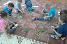 Агачларның яфракларын танырга, уеннар аша яфракларны тотып карап, төсләрен дә ныгытабыз.