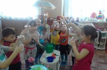 Бүген балалар белән гади тәҗрибәләр, уеннар аша су үзенчәлекләре турында белемнәрен тирәнәйтү өстендә эшләделәр. Яшәү чыганагы булган суга сак караш һәм балаларның күзаллауларын мөстәкыйль фикер йөртә белү сәләтләрен үстерү тәрбияләнде. -