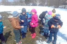 Балалар белән саф һавага чыктык, төрле уеннар уйнадык һәм соңгы карлардан крепость, замоклар төзедек, тауда шудык. Шул ук вакытта һава торышын да күзәттек: кояш көлә, елмая , җылыта, ккр көннән көн эзәя, җылы яктан кайткан кара каргалар агачларга оя кора. -