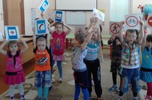 Бүген сөйләм үстерү эшчәнлегендә юл йөрү кагыйдәләрен искә төшердек һәм өч командага бүленеп юл билгеләрен аерырга өйрәндек.