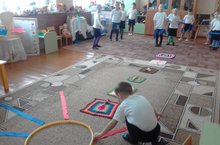 Физкультура эшчәнлегендә балалар белән төрле хәрәкәтле уеннар уйныйбыз, ике аякта, бер аякта сикерү элементлары кертелгән күнегүләр эшлибез. Уеннар аша балаларда җитезлек, өлгерлек, кыюлык сыйфатлары тәрбияләнә.