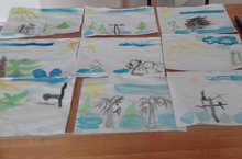 Бүгенге эшчәнлектә яңа төр рәсем ясау ысулы белән таныштык Һәм дымлы кәгазьләргә акварель краскалар ярдәмендә язның беренче ае мартны чагылдырдык.