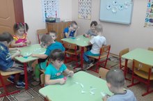 Балалар белән кисеп ябыштыру эшчәнлендә кар бөртеге ясарга өйрәндек.