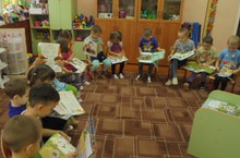 Бу атнаны тәмамлап балалар белән китапханәгә кунакка бардык. Китапханәче Люция апа баларны китапханә белән таныштырды, китапларга сакчыл карашта булырга, аларны ертмаска, ешрак китап укырга теләде. Китап яраткан бала тәртипле, белемле, укымышлы була, диде