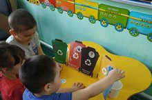 Балалар белән тагын бер кирәкле эш эшләп алдык. Уен аша, җыелган, төрле чүпләрне төркемнәргә савытларга урнаштырырга өйрәндек. Балалар бик кызыксынып уйнадылар, өйрәнделәр.Тормышта да бу эш бик кирәкле булачак.