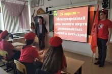 В рамках Всероссийского открытого урока 26 апреля с членами ВВПОД "Юнармия" был проведен урок посвященный 35-летию аварии на Чернобыльской АЭС. Юнармейцы почтили память погибших в техногенной катастрофе минутой молчания.