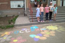 "Дуслык" лагерында бүген 8нче көн. Иртәнеге аштан соң ГТОга багышланган рәсем конкурсы оештырылды. Һәр отряд мәктәп каршындагы асфальтка спорт темасына рәсемнәр ясады. "Кояшкай" отряды футбол уйнаучы малай, ә икенче отряд бөтен төр спорт уеннарын чагылдырган рәсем ясадылар.