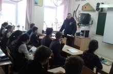 С сотрудником УУП Гатиным М.М. среди учащихся 8-9 классов была проведена профилактическая беседа по акции "Дети России - 2017" на тему "Предупреждение преступления по обороту, употребления среди несовершеннолетних детей наркотических средств и психотропных вещест".