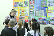 “Помоги первоклассникам безопасно прийти в школу” акциясе кысаларында бүген 1 нче сыйныф укучылары белән тәрбия дәресе үткәрелде. Балалар сфетофорның төсләре, юлда үз-үзеңне ничек тотарга кирәклеге турындагы кагыйдәләр белән таныштылар, һәм әлеге кагыйдәләрне үтәргә, башкаларга да өйрәтергә, үрнәк булырга сүз бирделәр. Дәрес ахырында “Добрая Дорога Детства” дигән мәгълүмати буклетлар өләшенде.