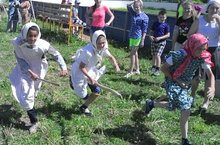 Лагерьның икенче көне Сабантуй бәйрәме белән дәвам итте. Башта җырлый -җырлый бирнә җыйдык,аннан соң уеннар башланды.Бәйрәмдә мәдәният хезмәткәрләре дә катнашты,алар да балаларга матур бүләкләр белән килгәннәр иде. Ә уеннар кызганнан кыза барды. Кемдер чүлмәк ватса, кемдер балык тотты, икенчеләр капчык киеп өйгерүдә алдынгылыкны бирмәде.