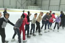 Ниһаять, көтелгән вакыт җитте, зур автобуска утырып "Сабантуй" комплексына юл алдык. Монда күргәннәр барыбызга да ошады. Алда - боз сарае! Күбебез тимераякта инде шактый оста җилдерә, беренче кат бозга чыгучылар да бар. Аларга тәрбиячеләр ярдәм итте.