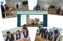 Бүген 9 сыйныф укучылары арасында “Районыбыз турында кем күбрәк белә?” дип исемләнгән уен-ярыш булып үтте. Укучылар командаларга бүленеп, уен дәвамында белемнәрен күрсәттеләр: районыбыз турындагы риваятьне искә төшерделәр, гербы һәм аның төсләре, күренекле шәхесләр исемен йөрткән биналары, туган ил турындагы мәкаль - әйтемнәр – барысы да ярыш биремнәрендә әйтелеп үтелде. Чара районыбызга багышланган җырлар һәм шигырьләр белән үрелеп барды. -