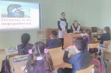 В рамках конкурса Эковесна-2018 в нашей школе проводятся различные мероприятия. Ученицы 11 класса Галиахметова Лейсан и Акберова Лейсан провели классный час в 4 классе на тему: "Отходы и их переработка". Мероприятие было очень интересным и полезным.