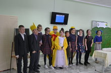На этот раз в сказочной постановке участвовали ученики 3 класса с инсценировкой стихов “The star”, “Tossing a pancake”, “The swing”, “Betty Botta bought a butter” в конце выступления исполнили песню “Can/Animals”; ученики 4 класса поставили сценку “Cinderella”, спели песню “If you happy…”, а также показали сценку на татарском языке рассказа Х.Халикова «Нинди кош?»