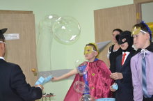 Наконец- то, самое радужное и торжественное шоу у нас в школе. Ребята 7 класса ставили шоу для начальных классов и для учащихся старшего звена. Первая часть шоу состояло из трюков (опытов по физике и химии) и фокусов с мыльными пузырями. Из цветов и огромных сердец. Дети попускали мыльные пузыри собственноручно. Это был фейерверк! Шоу имело продолжение, неотделимое от первой части. Итак. Меняется столик на большой бассейн и… каждый желающий может оказаться внутри самого мыльного пузыря! Да, вы можете встать внутрь мыльного пузыря вместе со своими друзьями и одновременно загадать желание на всех! И еще, получить незабываемую фотографию. И это еще не все…. -