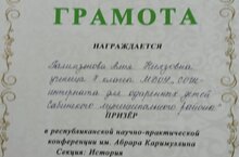 Ученица 7 класса, Галимзянова Алия выступила на секции "История" с исследователькой работой "Генеалогическое древо моей семьи" и стала призером. Выражаем благодарность Алие и ее научному руководителю Гумеровой Раушание Рифмировне и желаем дальнейших побед! -